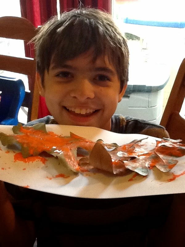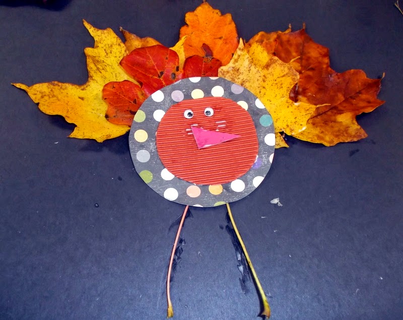 Cousin Maddie created her turkey using a pile of fall leaves, scrapbook paper and glue. Doesn’t get much easier than that!